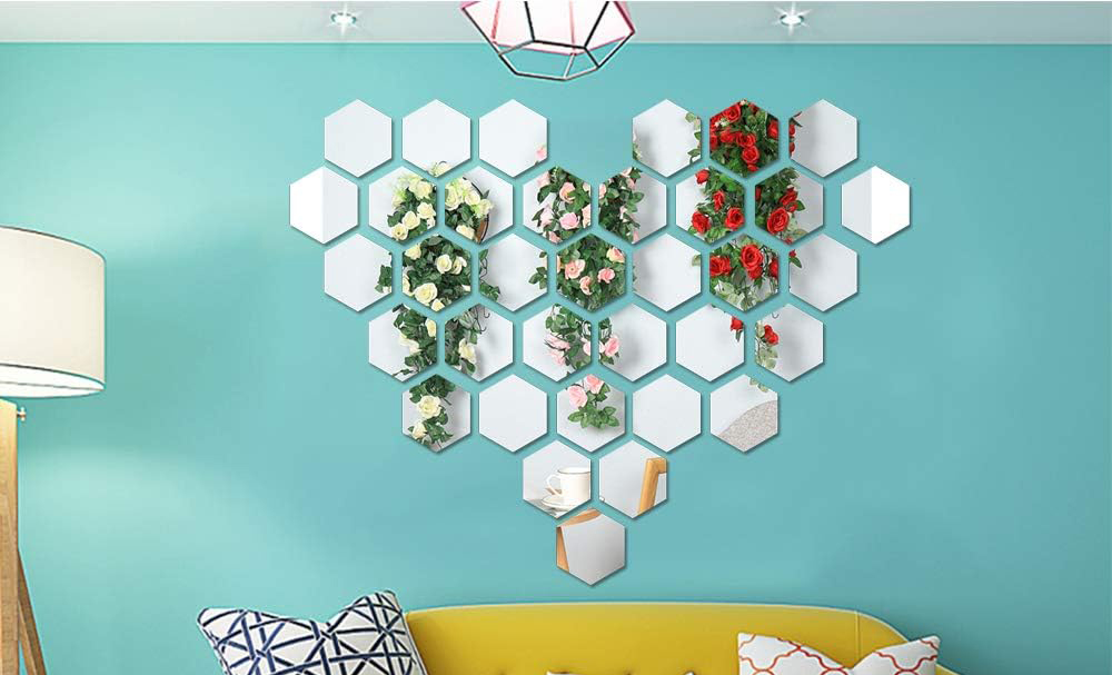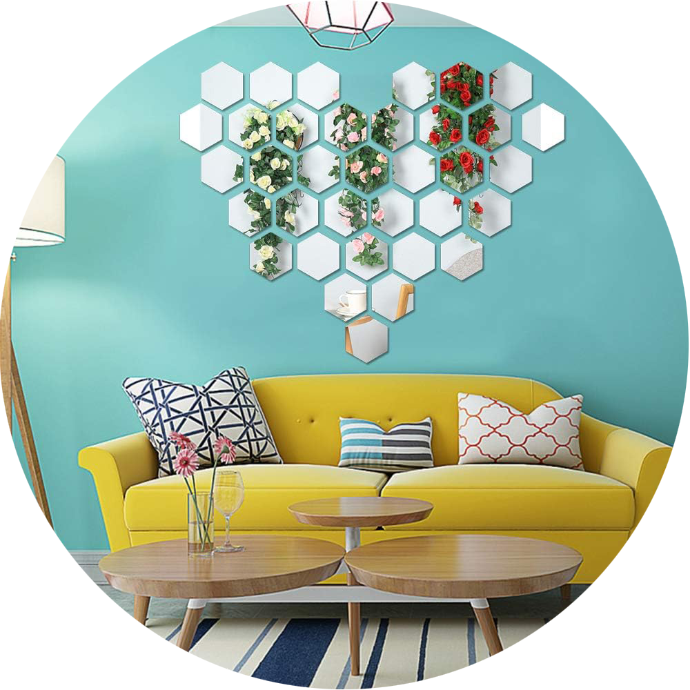 Acrylic Hexagon wall decor Mirror (Silver) - Wall Decorations
