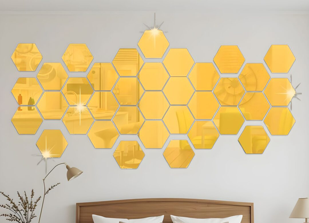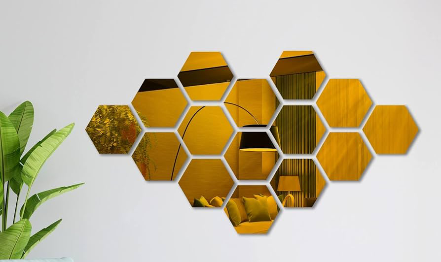 Acrylic Hexagon wall decor Mirror (Gold) - Wall Decorations